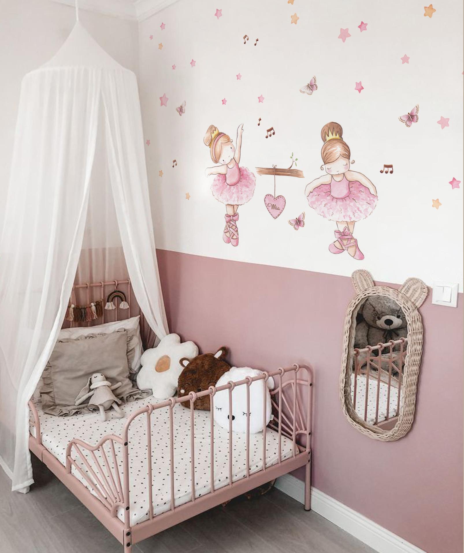Vinilo Infantil de Pared Bailarinas, Estrellas y Mariposas – Decoración para Habitación de Bebé Niña