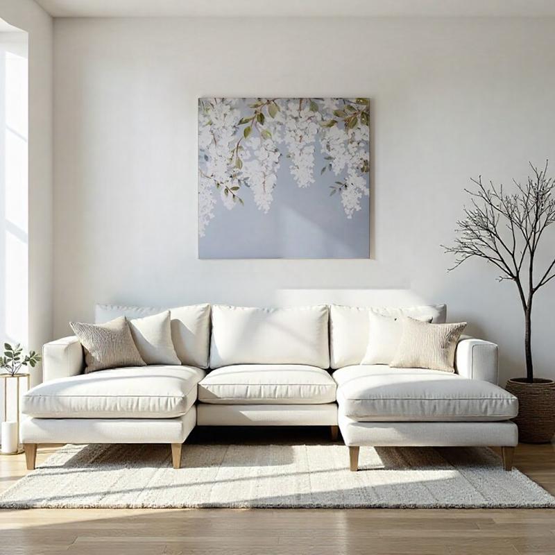 Cuadro de Glicinas Pintado a Mano – Arte Floral Personalizado por Encargo - 80x80 cm – Sin marco