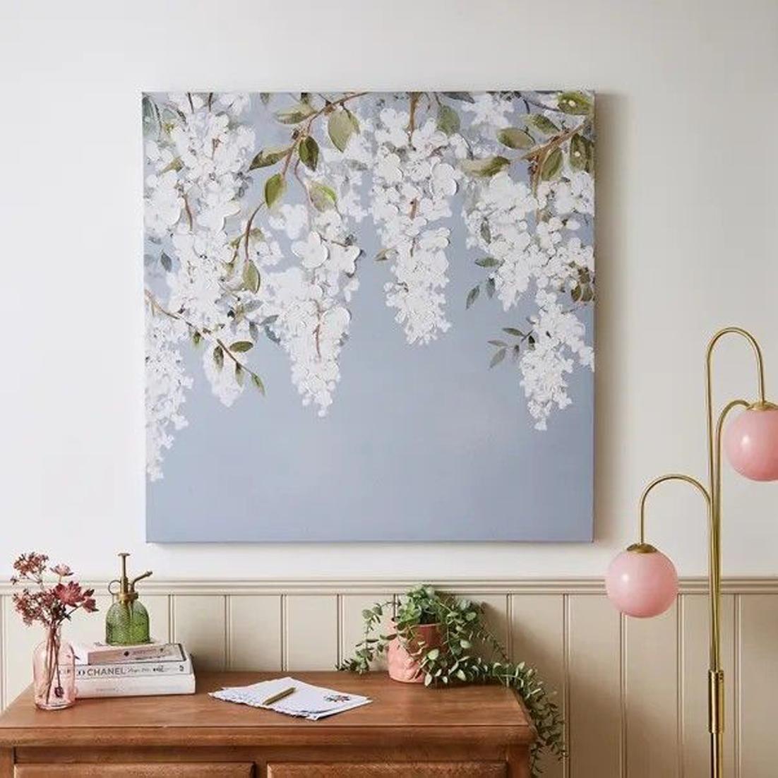 Deja que la belleza natural de las flores transforme tu espacio con este cuadro de glicinas pintado a mano, una obra original creada por encargo. Su diseño floral transmite serenidad, frescura y armonía, ideal para quienes buscan un toque artístico y elegante en la decoración del hogar.