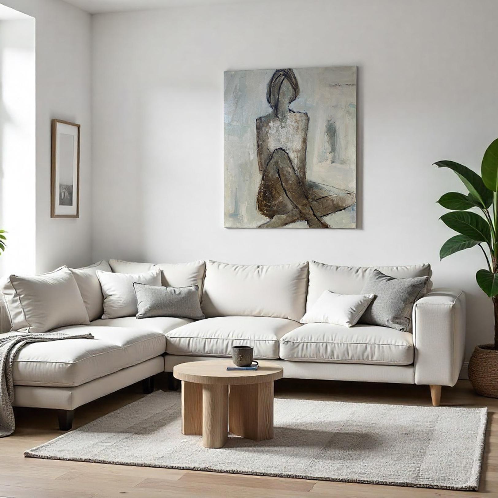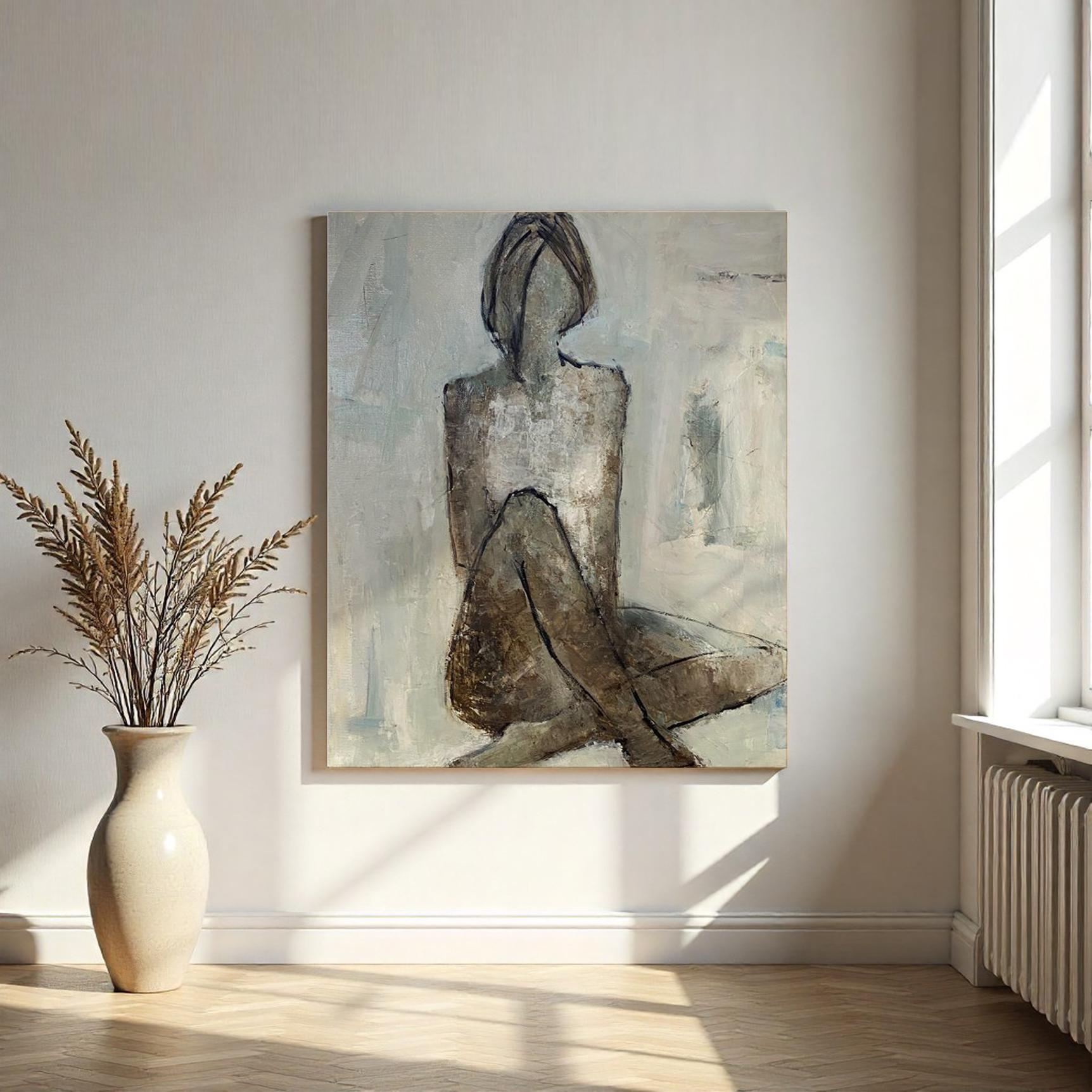 Obra abstracta realizada por encargo, titulada “Figura”, pintada completamente a mano. La composición se desarrolla en una armoniosa gama de tonos neutros que aportan elegancia, calma y versatilidad, permitiendo que la pieza se integre con facilidad en distintos estilos de interiorismo.